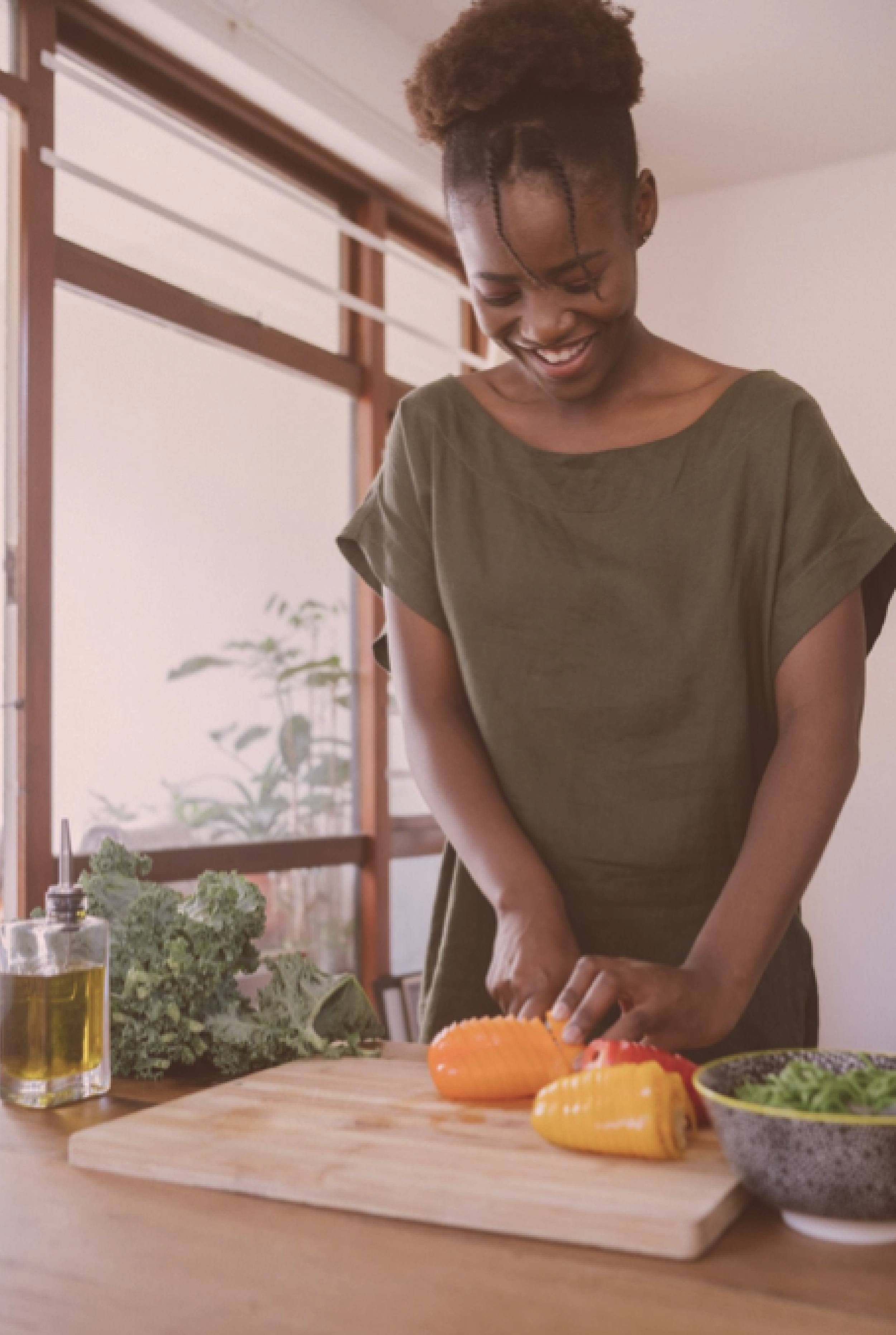 If you don’t really like to cook, plan to use one afternoon each week to put together a few make-ahead dinners, like cumin-spiced chickpeas and carrots on couscous or Mason jar salads. Use the same afternoon to deep clean one room each week, which will eliminate clutter and lower your stress levels as you move about your home.