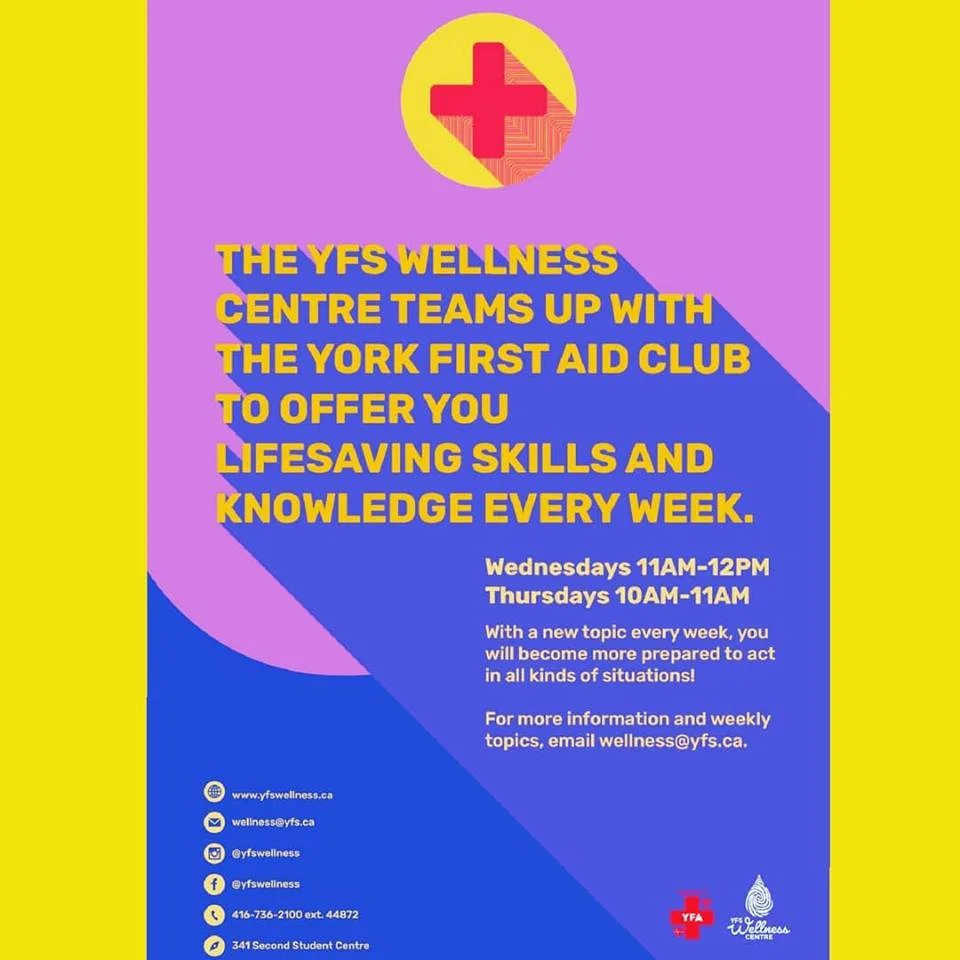 Every week the YFS Wellness Centre teams up with the York First Aid Club to offer you interesting and informative First Aid workshops. Meet us in 341 Second Student Centre!
